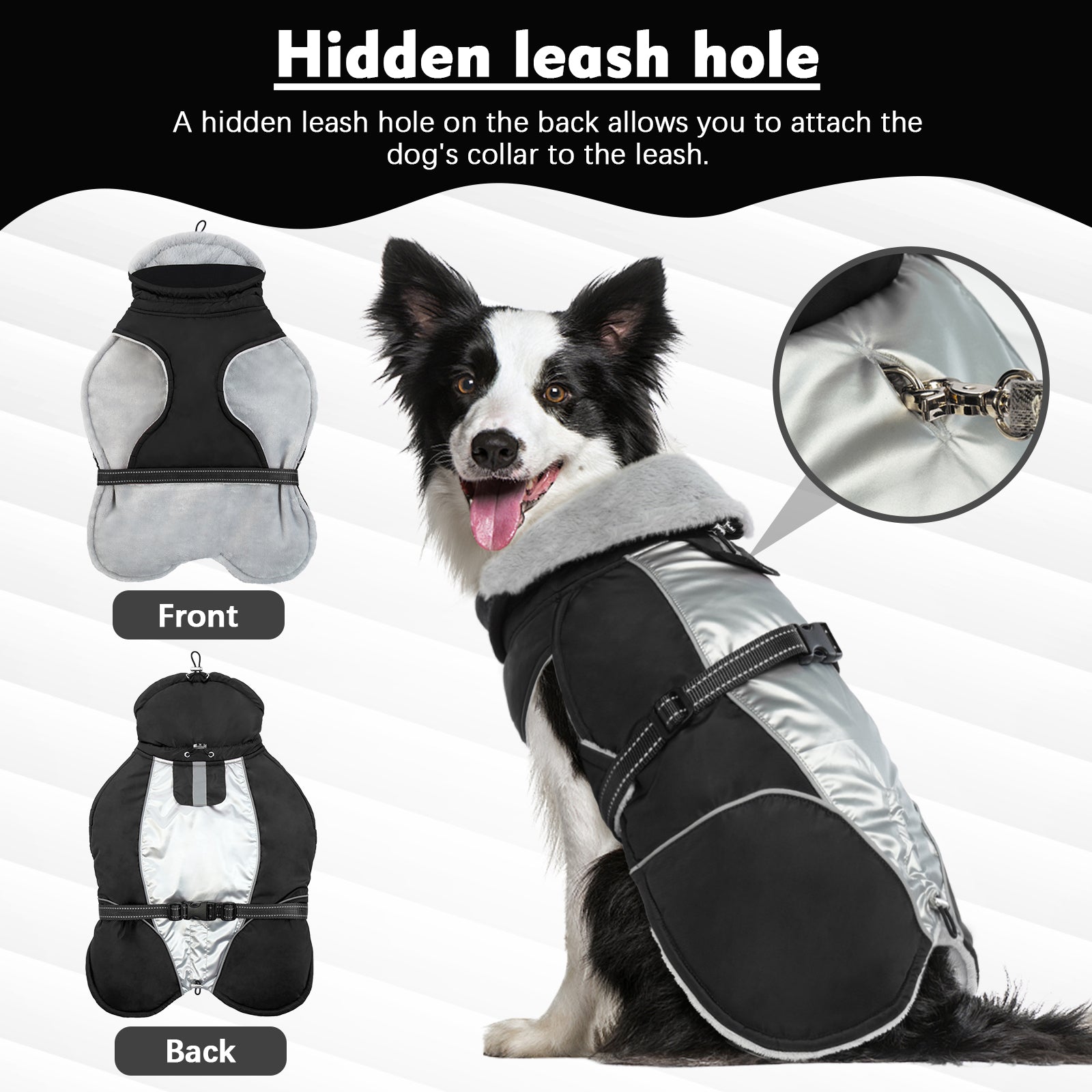 Adjustable: The dog jacket has an adjustable nylon buckle at the waist for easy adjustment and a comfortable fit. There is a hidden belt hole on the back. making it easy for you to put a collar on your dog