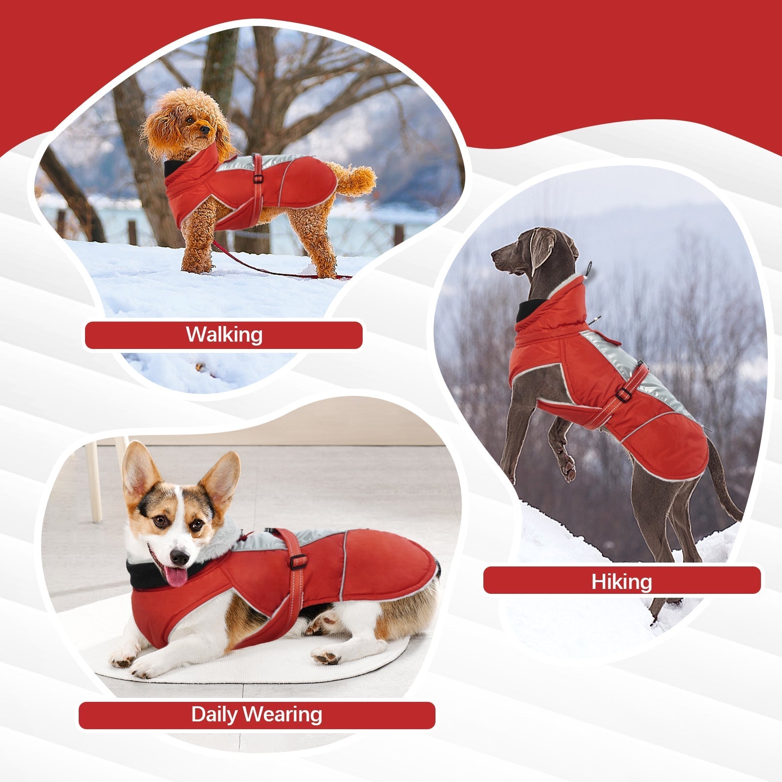 Reflective design: This dog winter coat features high visibility reflective strips at the connection between the back and abdomen. neck and tail. allowing you to discover your dog even when walking it at night.