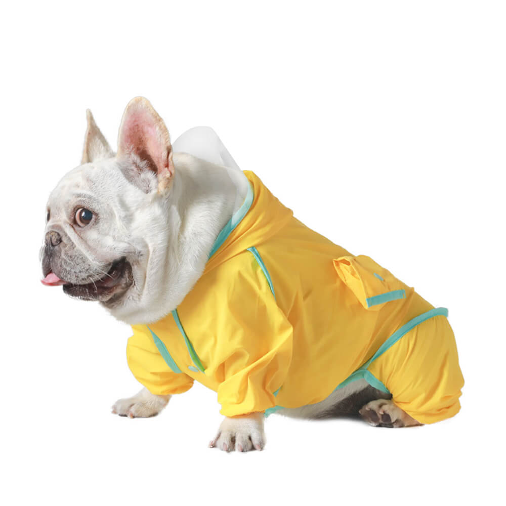 Bulldog raincoats keep pets dry and comfortable in wet weather. This dog raincoat allows longer outdoor playtime for your dog when it's raining.