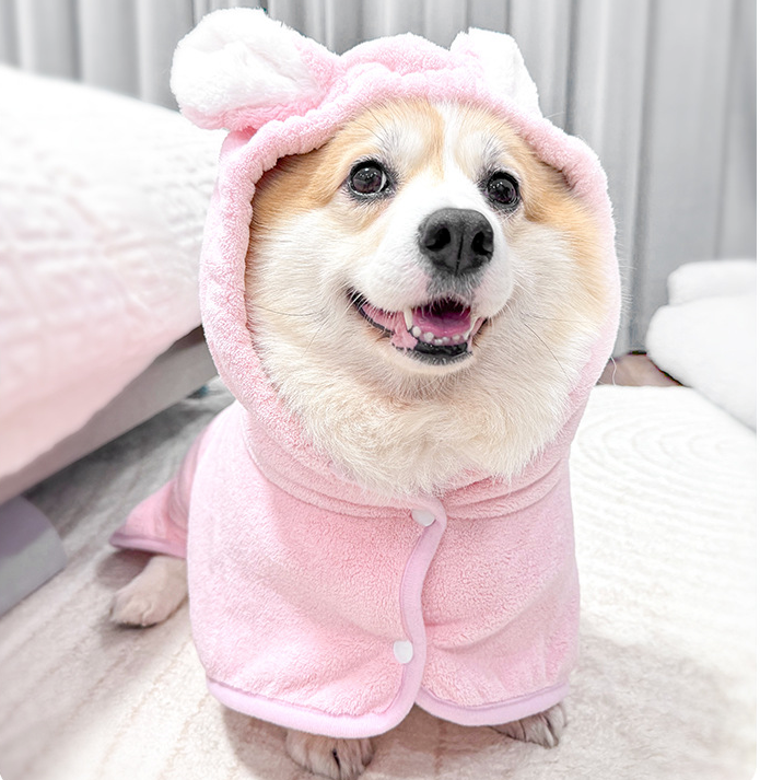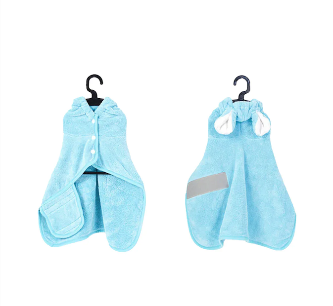 This bathrobe combines comfort and convenience with its quick-drying microfiber material and playful bunny ear design. Perfect for keeping your pet warm and dry after every bath or wet adventure!