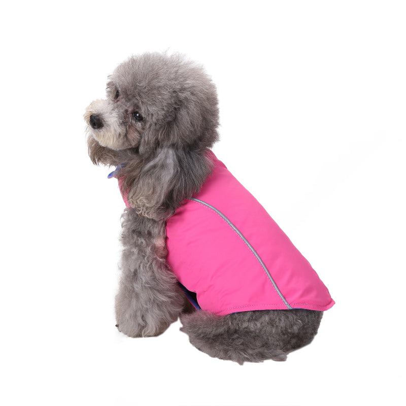 - The pet jacket has bright colors on both sides and can be worn on both sides.