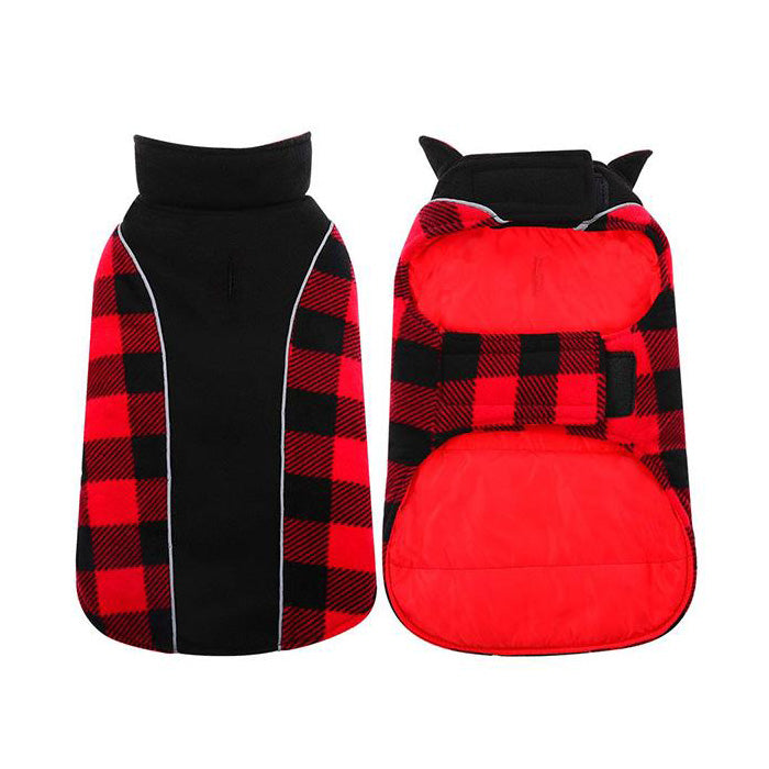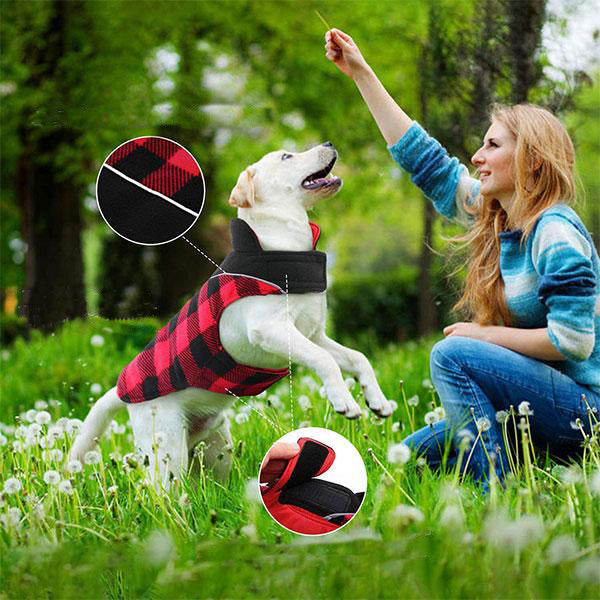 The appearance is a classic Scottish plaid design. exquisitely sewn to make this coat fashionable and timeless. The decorative thread piping with reflective effect allows the dog to be easily seen in low-light environments. ensuring the dog's safety outdoors.