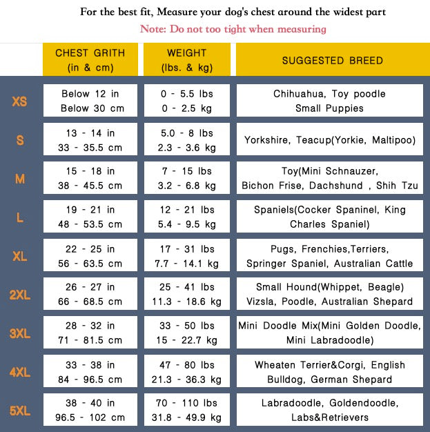 We bought an XL of these coats for each of our 20 lb Cavaliers and they fit well. They have been handy when it’s cold and snowy as well as rainy since the coats are somewhat weather proof. The dogs step into the arm holes, we zip up the back and snap the halter’s and are ready to go. Having the halters on the outside is really convenient. The coats have nice warm fleece inside too. A great find!