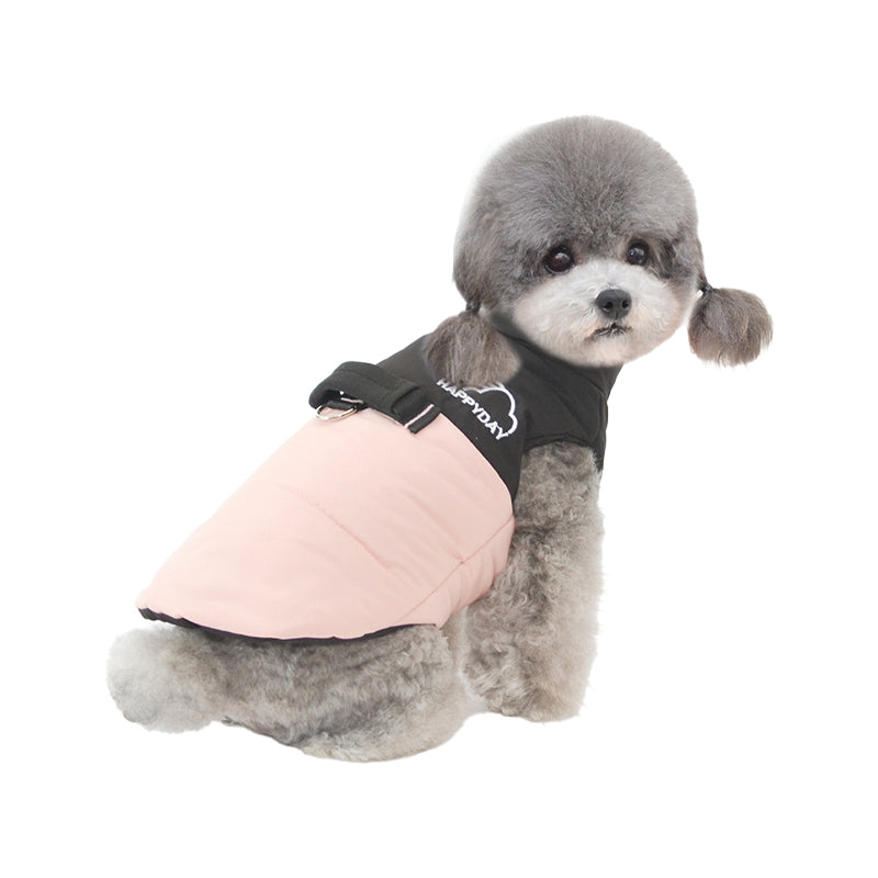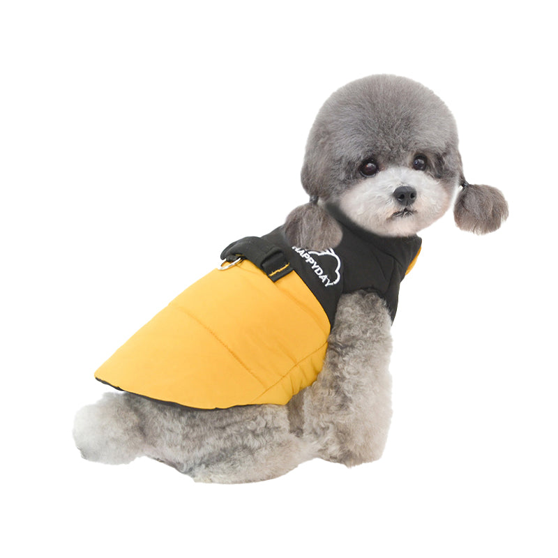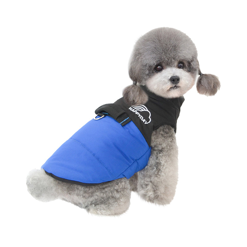 - This dog jacket is made of soft polyester fiber.